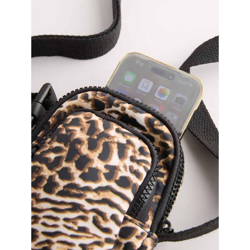 This animal print cross-body bag is a handy way to house your essentials on the go, with a utility-inspired design, dual zippered fastenings, a key chain and and adjustable shoulder strap. Durable nylon fabric Dual zippered pockets Key chain Adjustable sho