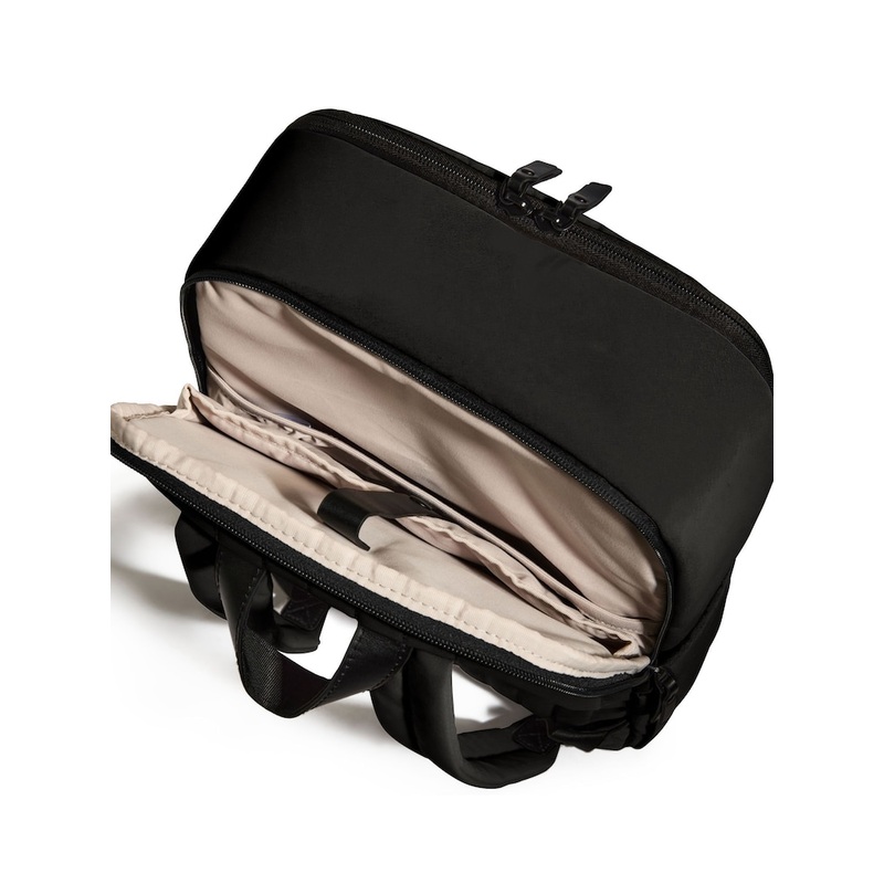 The Icon Black Backpack is the ultimate companion for modern travelers seeking style. Made from polyester, this streamlined backpack offers a sophisticated solution for short stays and everyday use. Designed to fit under seat restrictions on airlines, the clever design opens fully like a suitcase, with a detachable gusset for convenient packing. Externally, a sleek magnetic flap conceals a hidden essentials pocket, ensuring your valuables stay secure yet easily accessible. Inside, dedicated compartments for your laptop and water bottle enhance organization, helping you find space for everything you need. Height 41.5cm Width 28cm Depth 15cm 100% Polyester.