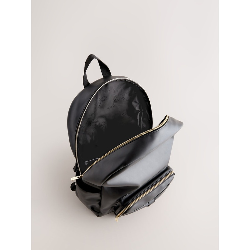 Equip her for the academic year with the chic Baker by Ted Baker Girls Back to School Bow Black Backpack. This stylish black PU backpack is adorned with delightful bow detailing and comes complete with a matching pencil case, ensuring she’s perfectly coordinated. Gold Baker branding on the front elevates the design, while adjustable straps provide a comfortable fit. Practicality is key, with front pockets for extra storage and convenient side pockets perfect for her water bottle. Finished with elegant Baker branded trims and a luxurious black bow lining, this backpack is the perfect blend of fashion and function for all her back-to-school essentials. Bow detailing Gold Baker branding Adjustable straps Front and side pockets Perfect for school Height 45cm Width 39cm Depth 11.5cm 2 x Bag Shell 100% PU. Lining 100% Polyester.