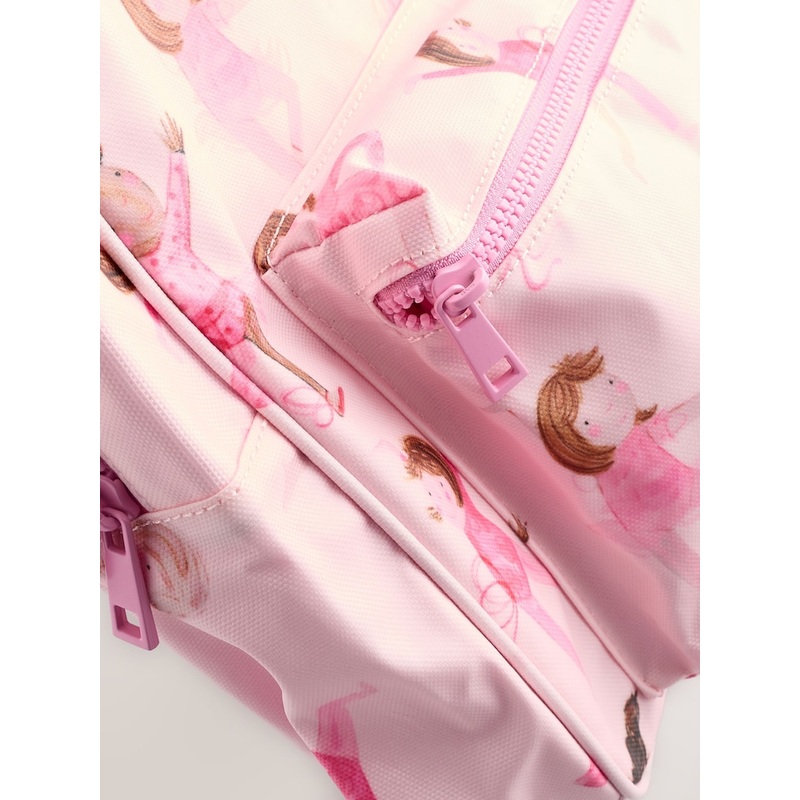 Add a pop of print to her school adventures with this backpack. With ample space for all her classroom essentials, this backpack is designed with a main compartment, outer and inner pocket. With adjustable straps and an inner name label for the finishing touches. Printed design Zip fastening Multiple compartments Adjustable straps Inner name label Height 35cm Width 32cm Depth 14cm Main 100% Recycled polyester with PU coating. Lining 100% Recycled polyester.