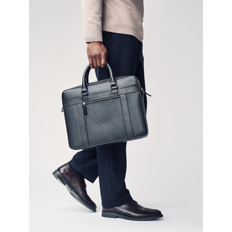 In a smooth leather fabric with a textured pattern, this briefcase is ideal for the office, featuring dual carrying straps and a detachable shoulder strap. The case has a zippered front pocket and a zippered main pocket with a laptop section. Leather fabric Carrying handles Zip front pocket Zip main pocket Shoulder strap Height 29cm Width 37cm Depth 6cm Main 100% Leather. Lining 100% Polyester.