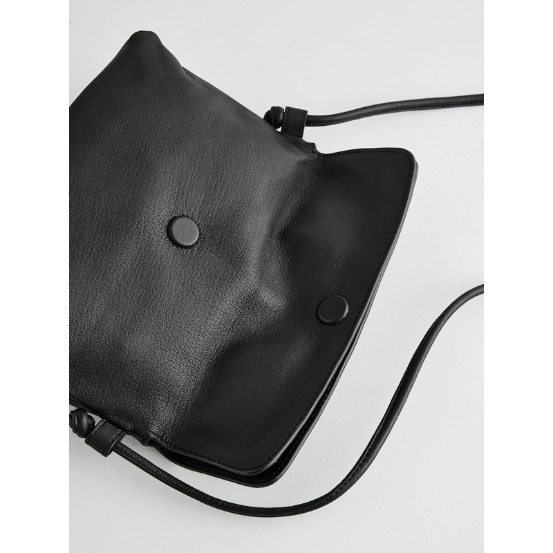 With a versatile style that looks great alongside the Boho trend as well as everyday looks, this convenient black bag is made from soft leather with a cross-body shoulder strap, a magnetic closure and a fully lined storage compartment. Leather Magnetic closure Fully lined Crossbody strap Height 16.5cm Width 25.5cm Depth 3.5cm Main 100% Leather. Lining 100% Recycled polyester.