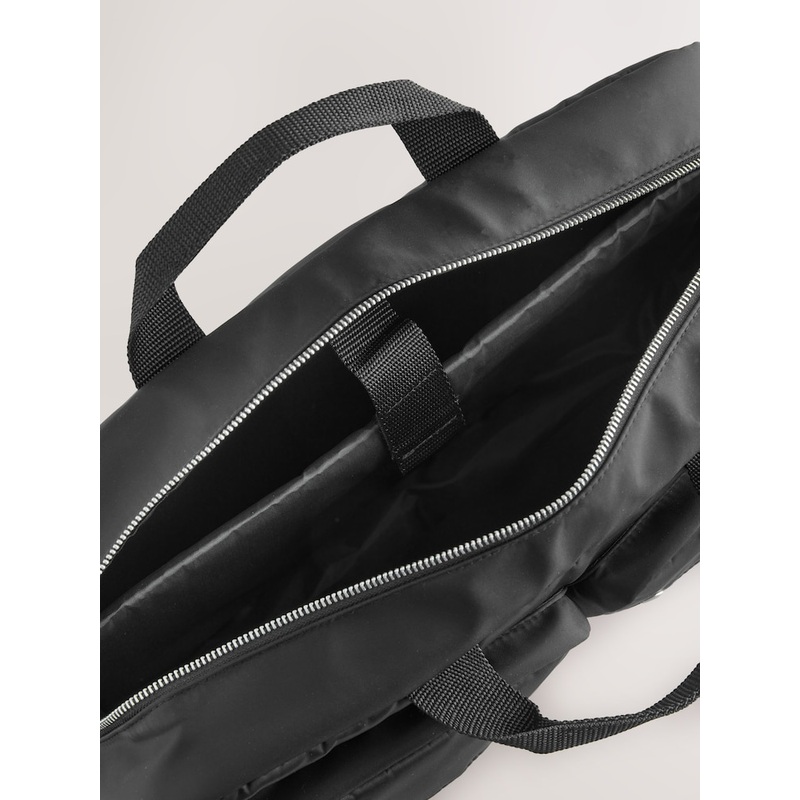 Formal and functional, this black modular briefcase is perfect for the office. Designed with a spacious main compartment and two front pockets with silver hardware, it’s finely finished with carry handles and a crossbody strap. Modular briefcase Adjustable crossybody straps Zip fastening Silver hardware Height 30cm Width 43cm Depth 12cm Main 100% Nylon. Lining 100% Polyester.