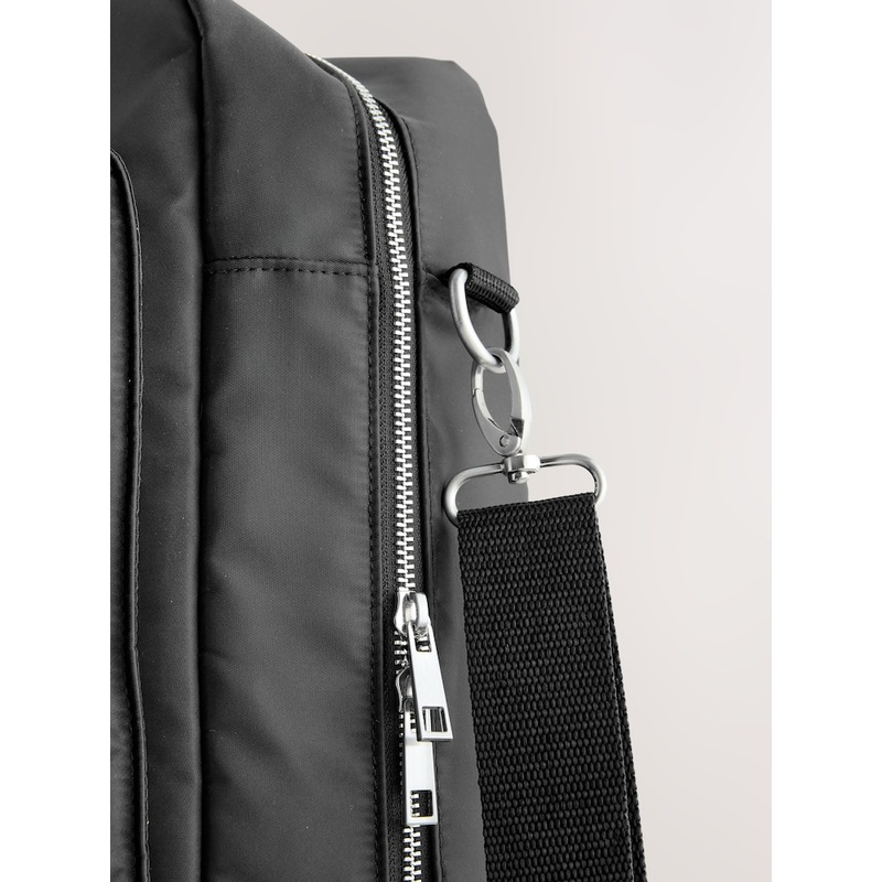Great for travel, this durable nylon holdall has a modern look with a large zippered main compartment, two front pockets with a popper fastening, dual carrying handles and an adjustable shoulder strap. Nylon fabric All-around zip fastening Dual popper fron
