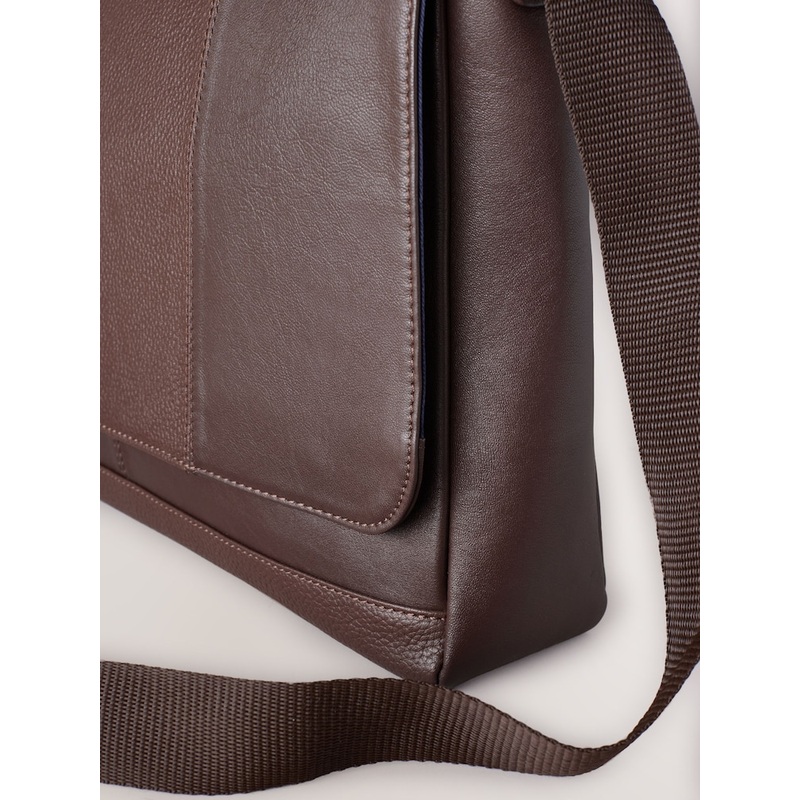 Store all those everyday essentials with ease in our Signature leather messenger bag. Featuring all the space you need including an internal laptop pocket, pen holders and a small additional zip pocket, this stylish bag is ideal for office days and beyond. Made from 100% leather with a snap fastening flap front and adjustable shoulder strap. 100% Leather Adjustable shoulder strap Internal laptop pocket Pen holders Small pocket Snap fastening flap front Height 37cm Width 42cm Depth 13.5cm Main 100% Leather. Lining 100% Polyester.