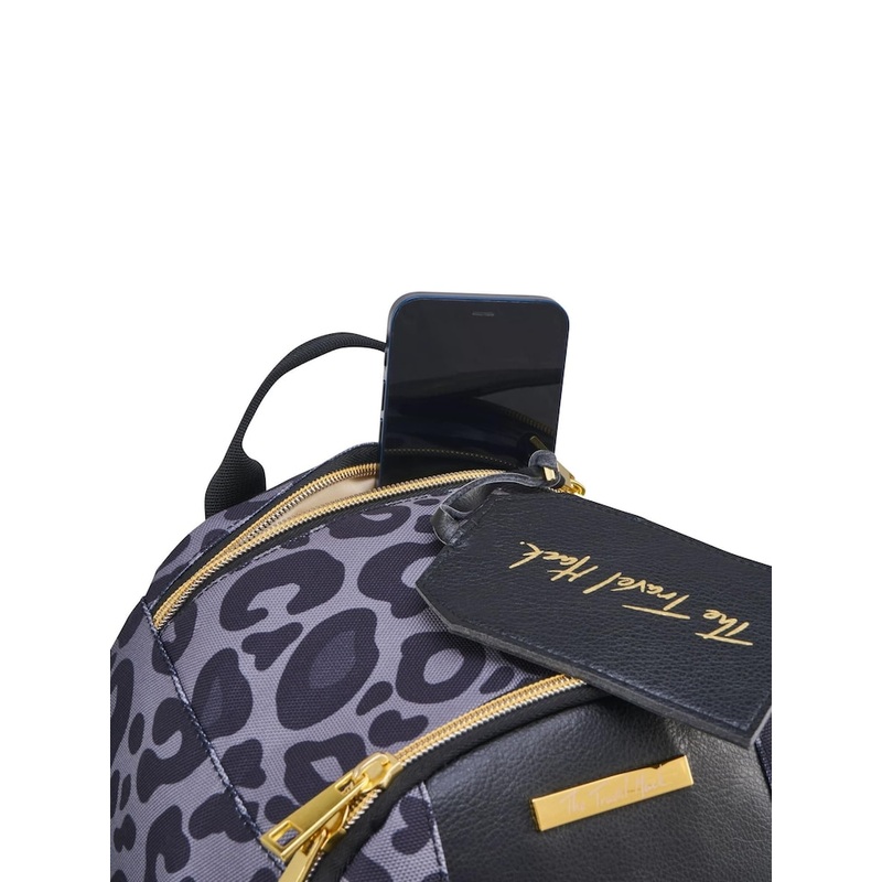 A stylish, compact ladies travel backpack in black/grey. Padded back laptop or ipad pocket compatible for devices up to 13′. Fits Ryanair Cabin Bags 40x20x25cm ‘free’ under-seat hand luggage rules. Flies for free on all known airlines. Lightweight design weighs just 0.6 kg Features an easy access top pocket for purses, sun glasses, phones and travel documents. 20L internal capacity Comfortable padded airmesh back panel and straps Shower proof external shell with rose gold detailing ID holder 3D packing pockets. Water bottle holder and strap on the rear panel to combine effortlessly with rolling luggage. Height 40cm Width 20cm Depth 25cm Height 40cm Width 25cm Depth 20cm 100% Polyester.