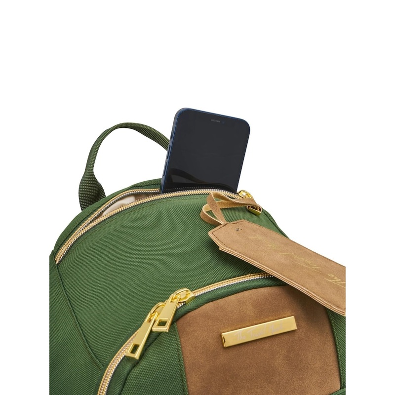 A stylish, compact ladies' travel backpack in green. Padded back laptop or iPad pocket compatible for devices up to 13'. Fits Ryanair Cabin Bags 40x20x25cm 'free' under-seat hand luggage rules. Flies for free on all known airlines. Lightweight design weigh