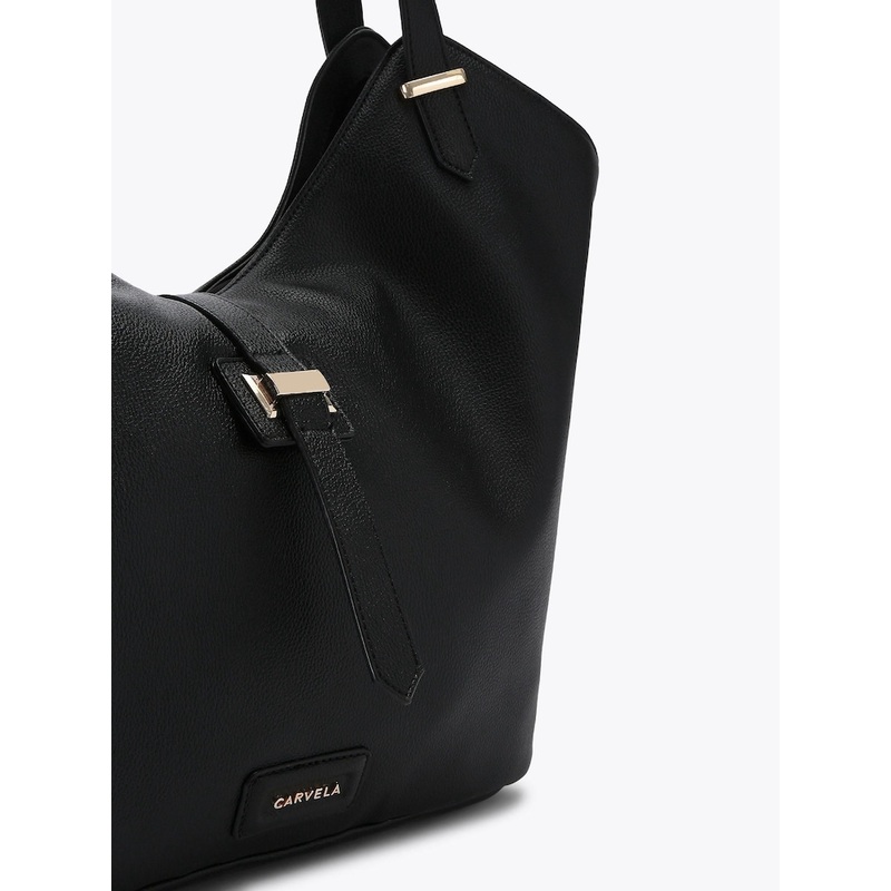This Carvela Capri Soft Tote bag is crafted from a striped black and neutral woven raffia. There is a flap over closure strap in black with gold loop detail. Dimensions: 26cm (H), 50cm (L), 15cm (D). Strap length: 53cm. 100% Synthetic rubber.