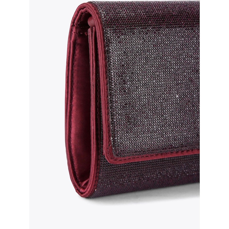 This Carvela Spiral Clutch Bag is crafted from a dark red fabric which is embellished with crystals. There is gold tone branding on the back of the bag. Dimensions: 13cm (H), 24cm (L), 4cm (D). Strap length: 112cm. 100% Synthetic rubber.