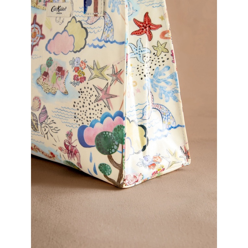 A mini version of our much-loved original, our Small Bookbag hosts all the same features but in a smaller and convenient size. A signature silhouette in our range, our Small Bookbag features a wipe-clean exterior thanks to the PVC-coated shiny cotton making it hassle-free to care for. The plastic base helps to retain the shape and structure of the bag, and the two grab handles make it comfortable to carry around wherever you go. 100% cotton with PVC coating Grab handle straps Wipe clean exterior Cath Kidston branding Height 20cm Width 22cm Depth 8.5cm 95% Cotton, 5% PVC.