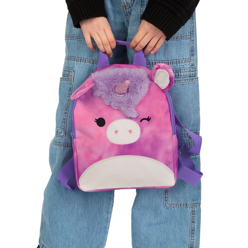 Bring some squishy sparkle to their daily routine with the Squishmallows Lola the Unicorn backpack! Bursting with personality, this Squishmallow rucksack, which is the perfect choice to be used as a girls school bag, shows off Lolas cheerful face. Completing the purple kids rucksack with her signature 3D horn and ears and a super soft fluffy mane. The dreamy purple background adds the perfect touch of color, while the adjustable straps make this Squishmallows girls backpack super easy to carry. It s the real deal for fans of squishmallow toys and squishmallow merchandise.