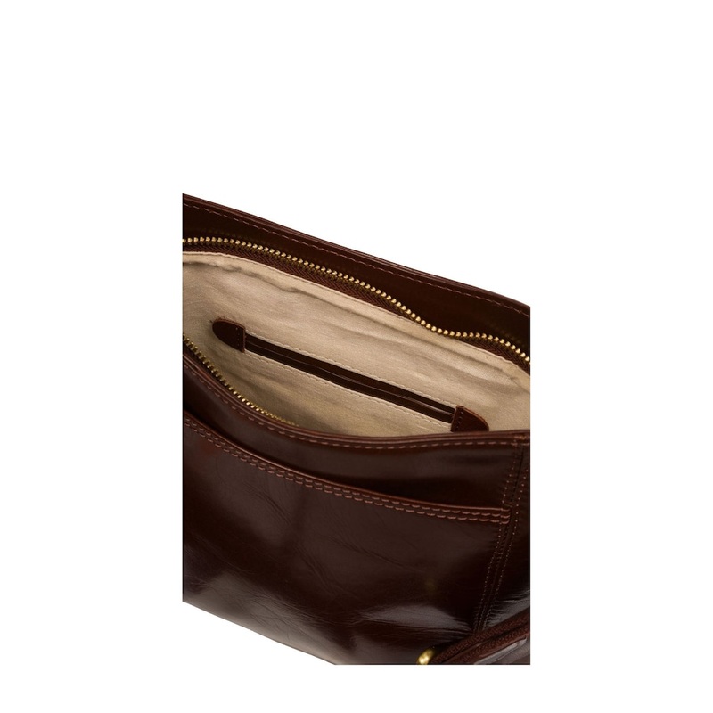 Reminiscent of the classic satchel design, the Carla from Conkca's Signature Collection elevates this design with contemporary features. Brass metal fittings adorn the front of the bag including the zip and mockle buckle design which both open to conceal s
