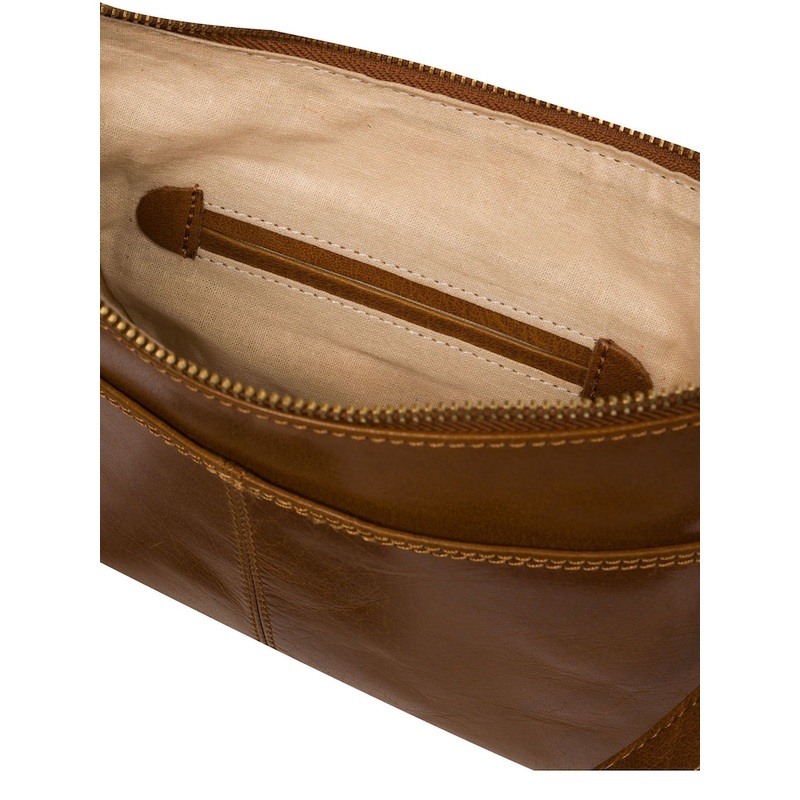 An attractive overlay slip pocket that adorns the front of the Viola from Conkca’s Signature Collection gives this accessory a unique look. Additional storage space is provided by a slip pocket on the interior of the main compartment. The main compartment is lined with 100% cotton and secured with a brass metal zip. This is complemented by matching fittings on the adjustable slim leather strap which has a maximum drop length of 65cm. The Conkca squirrel charm and logo are blind embossed alongside a charm for a simply elegant finishing touch. Height 26.5cm Width 2cm Depth 1.5cm Main 100% Leather. Lining 100% Cotton.