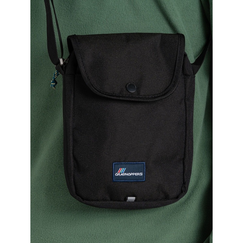Sturdy, stylish crossbody bag from Craghoppers. The tough 900D polyester construction of this Kiwi Cross Body Bag has an H2O Shield DWR finish to help keep contents safe and protected. Adjustable shoulder strap, Reflective detail, Front stud fastening. Can accommodate a 7 tablet. 100% Polyester.