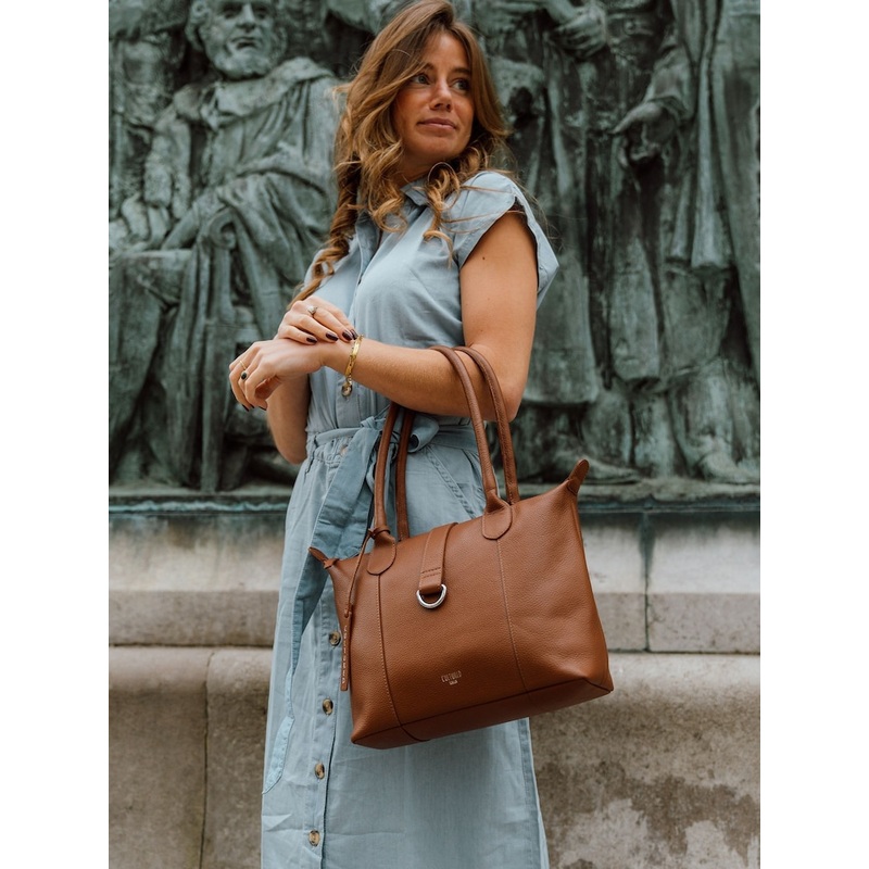 Part of Cultured London's Richmond Collection, the Uma tote bag is crafted from natural leather, which is soft to the touch. The main compartment is secured with a zip-over top that is complemented by an attractive strap that folds over. The lined interior