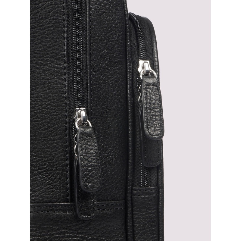 The Duchamp Mens Backpack is a stylish blend of practicality and luxury. Featuring a spacious main compartment with an internal laptop sleeve, a front pocket for organisation, and padded adjustable straps, it offers comfort and convenience. The debossed logo adds a refined touch. Ideal for both business and casual wear, this versatile backpack is perfect for the modern, on-the-go individual. Dimensions: 36cm x 30cm x 10cm. 100% Leather.