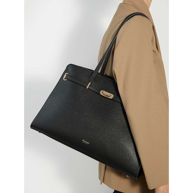 Designed with two leather buckle straps threaded through gold hardware that fasten with a matching gold front facing turning clasp this beautifully crafted leather bag features a contrasting tan suede interior. The interior boasts two compartments divided by a central slip pocket with a flap closure. The side pocket includes a chic removable mirror that matches the interior lining. Complete with four feet on the bottom to protect the base the addition of the detachable long cross-body strap allows you style this bag multiple ways. Height 40cm Width 29cm Depth 15cm Upper 100% Leather, Lining. and Sock 100% Leather. Sole 100% Rubber.