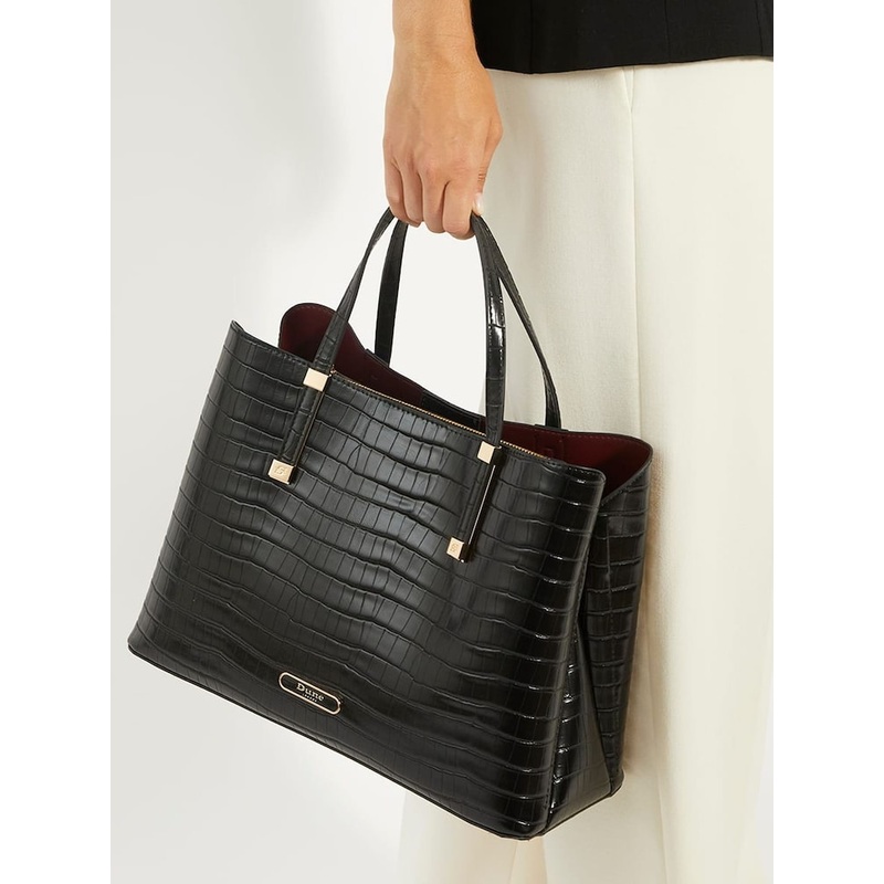 Our Dorry is a contemporary addition to the staple tote bag in black. This boxy silhouette is perfect for stowing away your essentials and more. Finished with our bespoke branded hardware standing studs each prolonging the wear and an interior that’s split into three compartments for organised storage this rotational design is certain to elevate your everyday styling. Height 35cm Width 25cm Depth 15cm 100% Synthetic.