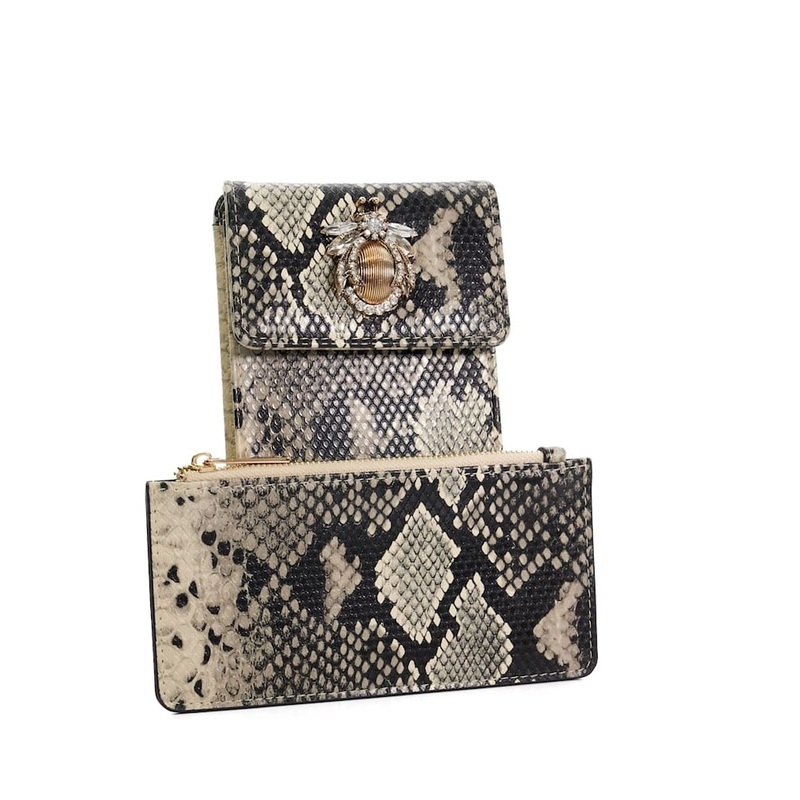 The Saskias lanyard purse is both chic and practical. It has a pouch for your phone along with a zip-up purse an elegant gold chain handle and our signature broach embellishment. Height 11cm Width 19cm Depth 4cm 100% Synthetic.