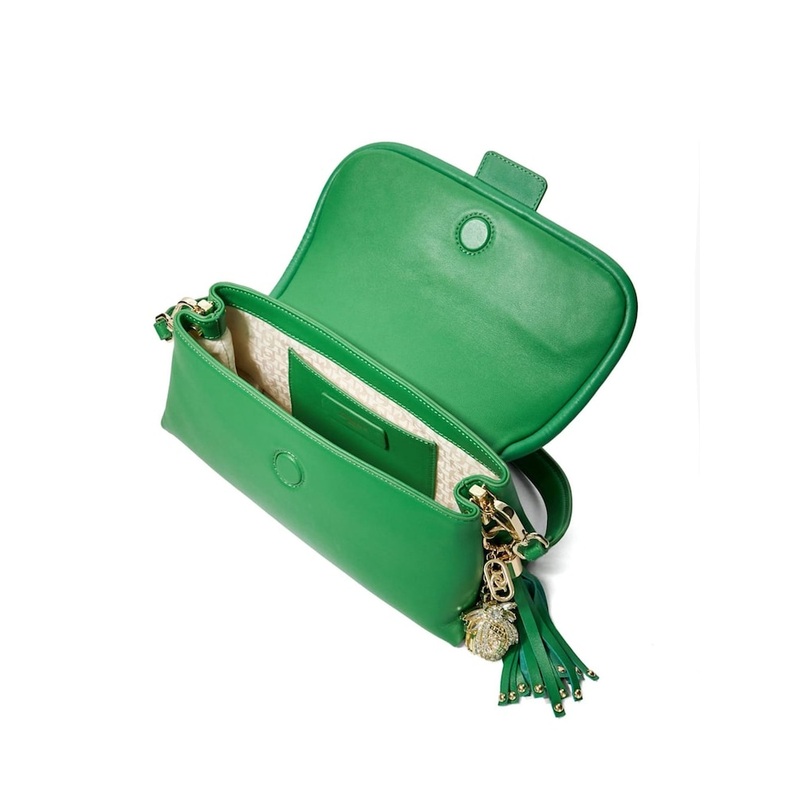 Our Premium Collection Chelsea shoulder bag is crafted from beautifully soft luxurious calf leather. Measuring 28cm in width 11cm in length and 10cm in depth this elegant style features a removable shoulder strap for a dressier look and a long leather and chain strap to wear crossbody. Fully lined with contrasting monogrammed material open the magnetic fastening to reveal a generous central compartment and side slip pocket designed to keep you organised in the chicest most considered way. Chelsea has been finished with our signature interlocking double D logo on the clasp in gold h. Height 28cm Width 11cm Depth 10cm 100% Leather.