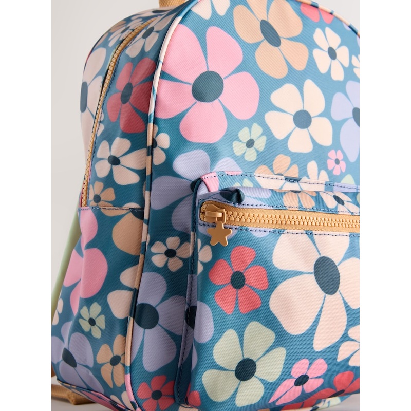 Add a pop of print to her school adventures with this backpack. With ample space for all her classroom essentials, this backpack is designed with a main compartment, outer and inner pocket. With adjustable straps and an inner name label for the finishing touches. Printed design Zip fastening Multiple compartments Adjustable straps Inner name label Height 35cm Width 32cm Depth 14cm Main 100% Recycled polyester with PU coating. Lining 100% Recycled polyester.