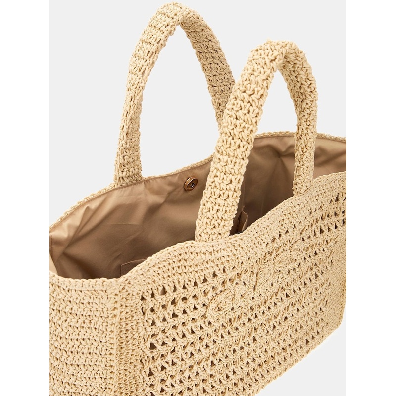 Crochet beach bag. Emboridered logo to front. 100% Nylon.