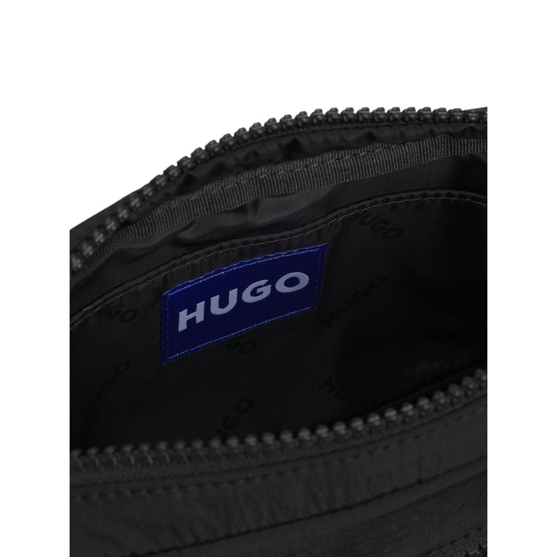 Featuring a blue logo and matching trims, this HUGO Menswear bag is an everyday essential. Adjustable strap and zipped compartments. Main 100% Nylon. Lining 100% Nylon. Main Lining 100% Polyester.