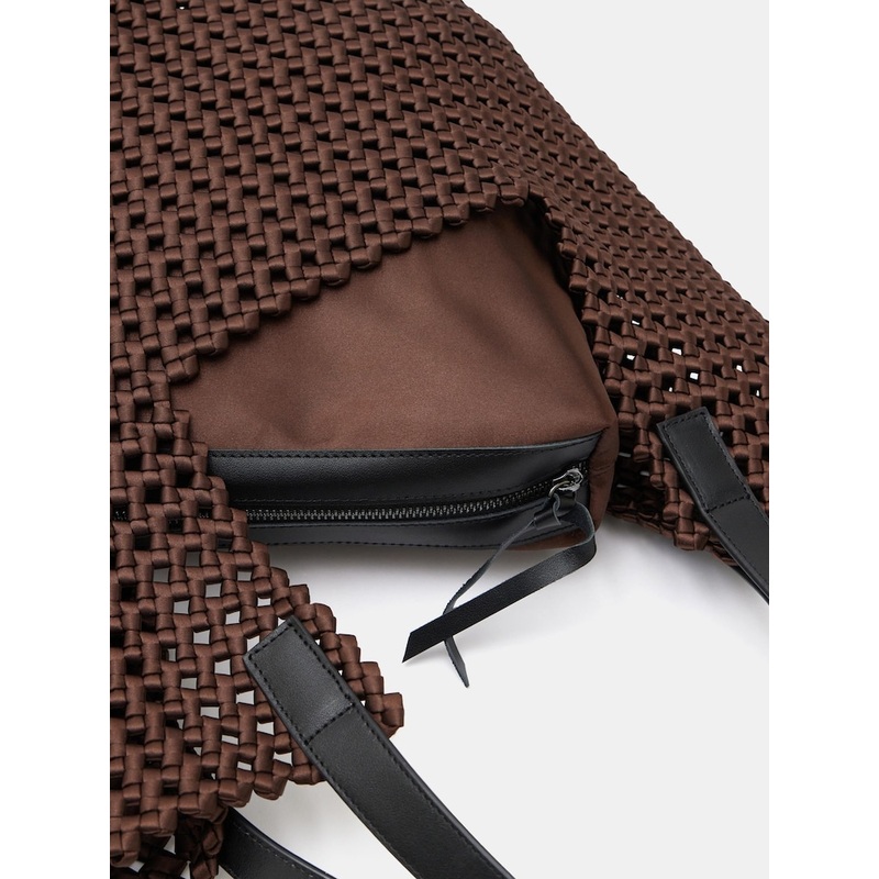 Who knew woven satin could look so good? As our hero fabric this season, it takes on a completely different feel in this basket-inspired tote bag. We love that we can fit plenty inside, and we've included a handy internal pouch to keep valuables safely zip
