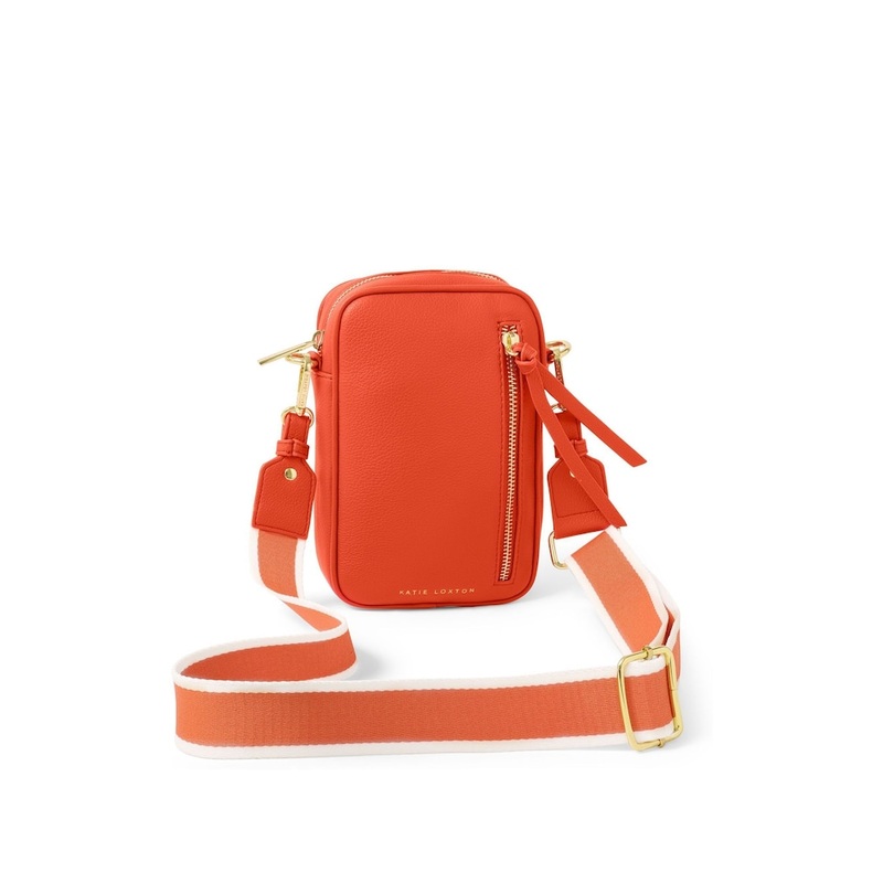 The Hallie Small Crossbody Bag from Katie Loxton features a stylish canvas strap, a convenient front zip pocket, and a spacious interior that fits your phone, keys, and a small purse, making it the perfect everyday accessory for your essentials. 100% PU.