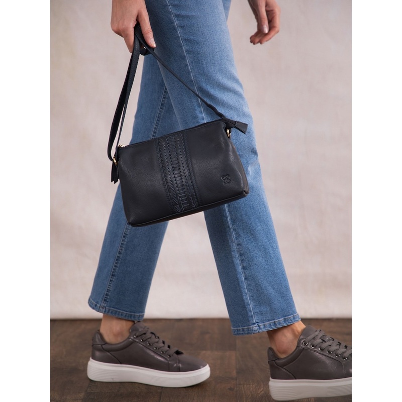 Crafted from real leather, the Eden cross-body bag is the perfect blend of style and practicality. Its compact yet spacious design is ideal for carrying your everyday essentials, while the intricate woven front detail adds a timeless touch. A zip-top closure keeps your belongings secure, with a rear zip pocket for easy-access items. Inside, a central divider creates two organised compartments, complete with zip and slip pockets to keep everything in place. Finished with an adjustable cross-body strap, the Eden bag offers effortless hands-free wear for any occasion. Height 17cm Width 25cm Depth 6.5cm 100% Leather.