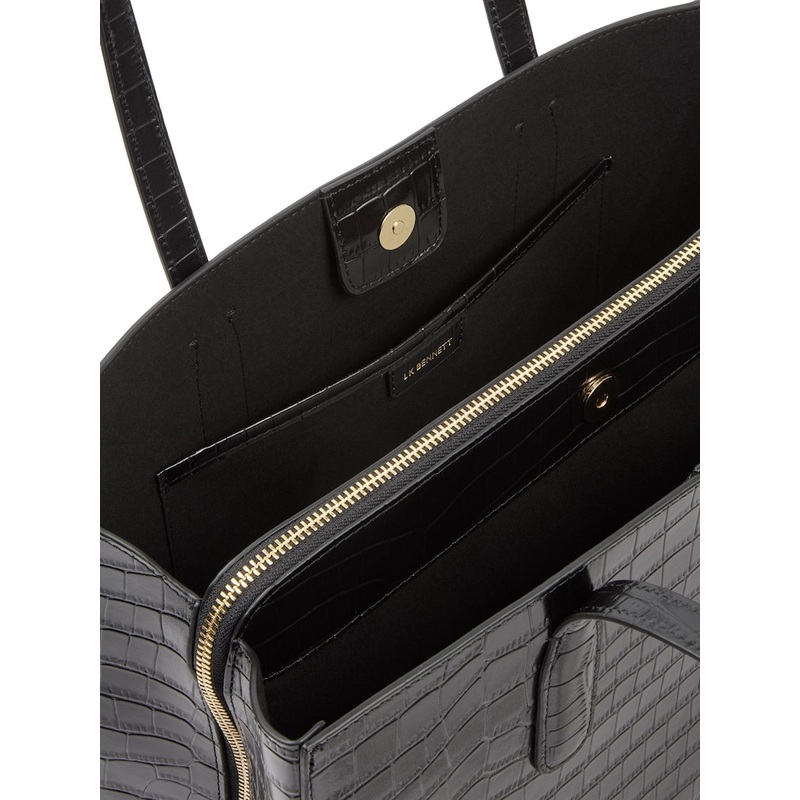 This tote bag’s sleek, geometric design draws inspiration from modern architecture and urban minimalism. The Olivia tote in black features durable, high-quality leather with clean lines and a spacious interior perfect for everyday essentials. Style it with tailored workwear for a sophisticated office look or with casual weekend attire. 100% Leather.