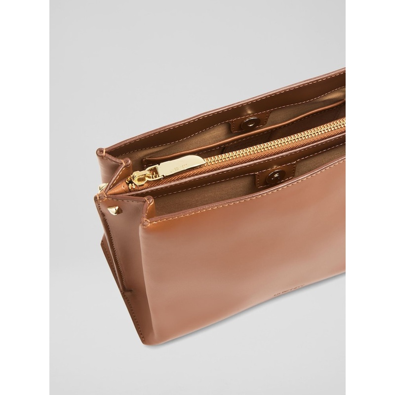 The Evie shoulder bag, crafted in Italy from smooth brown leather, is a chic, structured crossbody featuring new branding and a 100% cotton lining. Perfect for pairing with blazers or casual outfits, it seamlessly transitions from work to weekend. Ideal fo