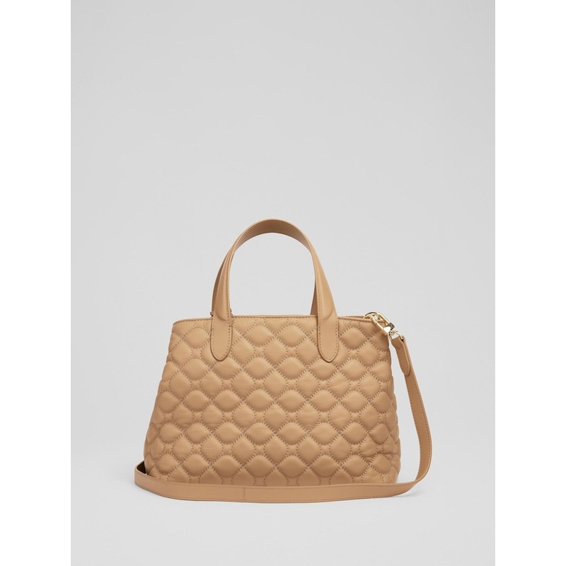 The Juliette tote bag features logo quilting that adds texture to this versatile piece. This camel-coloured tote has a warm brown hue that complements any outfit, crafted with a quilted design that's both practical and stylish. Pair it with everything from