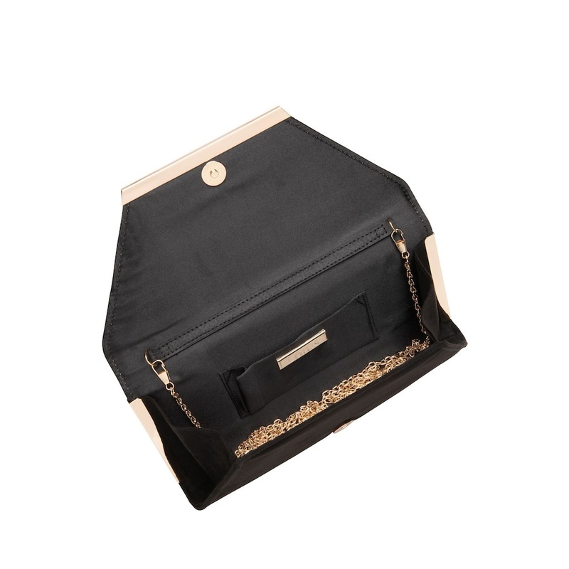 This envelope clutch bag has a sleek silhouette and is accentuated by polished metal trims. Finished with a magnetic fastening to help keep all your possessions safe, a detachable chain shoulder strap for when you want to go handsfree and an internal slip pocket, this Lotus handbag is an enviable accessory. Height 14.5cm Width 26cm Depth 4cm 100% Textile.