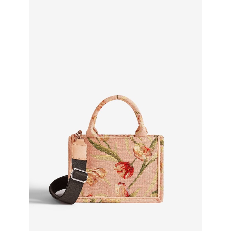 Mini Embridered Structured Tote Bag featuring: gorgeous floral canavs material, Love & Roses embroidered branding, printed inside lining, detachable webbing strap. The perfect summer bag. Main 73% Polyester, 10% Viscose, 8% Cotton, 4% Acrylic, 3% Wool, 2% Nylon. Lining 100% Polyester.