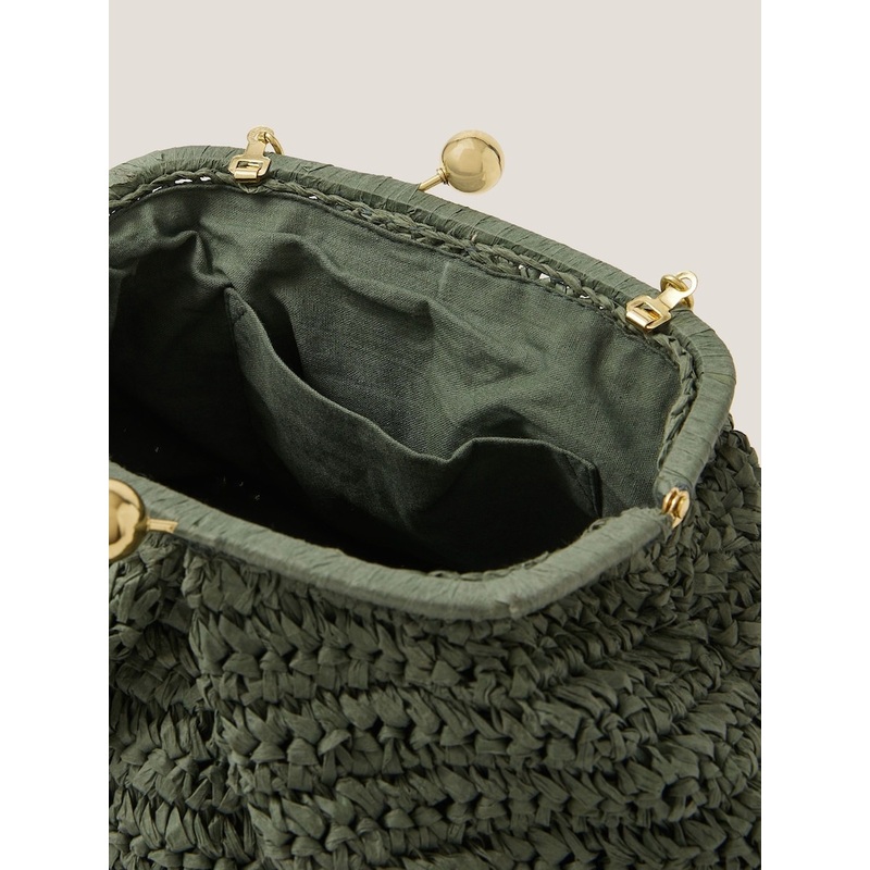 Secure that summer bag. Woven from raffia with a clip-frame profile, this clutch is a chic accessory for all your holiday looks. Finished with an optional gold-tone chain strap. Width 2.5cm 100% Other fibres.