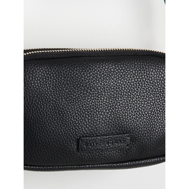 Silver metallic cross-body bag with two zipped pockets, a striped woven strap and compact rectangular shape. Switch to the matching slim strap or remove and use as a clutch. Height 11cm Width 18cm Depth 5cm Upper 100% PU. Lining 100% Polyester.