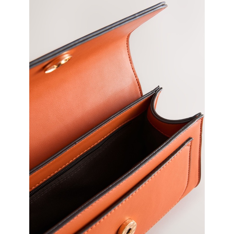 Made from a soft and smooth faux leather, this hand held bag has a carrying handle to the top and an adjustable, removable strap. A magnetic fastening to the flap closure keeps your essentials safe, with a zippered internal compartment residing inside. Faux leather Carrying handle Adjustable and removable strap Flap closure Internal pocket Height 13cm Width 23cm Depth 5cm Outer 100% Polyester with PU coating. Lining 100% Recycled polyester.