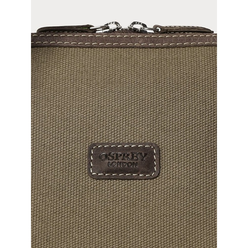 The Hunter XL Weekender offers an expansive interior, ensuring you never have to leave anything behind and allowing you to embark on extended getaways with confidence. Transition seamlessly between travel and leisure with this Weekenders versatile design. Whether youre jet-setting for a business trip or planning a weekend escape, this bag effortlessly adapts to your needs. Handcrafted in khaki canvas with brown leather trims, the front of the bag bears the OSPREY LONDON embossed leather logo patch, with chocolate leather panelling along the top. The rolled leather top handles are crafted in chocolate leather with contrast ecru cotton cross-stitch detailing. The interior is zipped open with a shiny nickel zip that runs across the length of the bag, featuring two leather zip pulls. Lined in chocolate OSPREY LONDON jacquard fabric, the interior is spacious with ample room for essentials. Plus, an additional zipped pocket inside accommodates items needing extra security, with the OSPREY LONDON winged crest logo framed in matching leather beneath. Comes with a dust bag. Height 39cm Width 68cm Depth 27cm 50% Leather, 50% Leather* *Contains non-textile parts of animal origin.