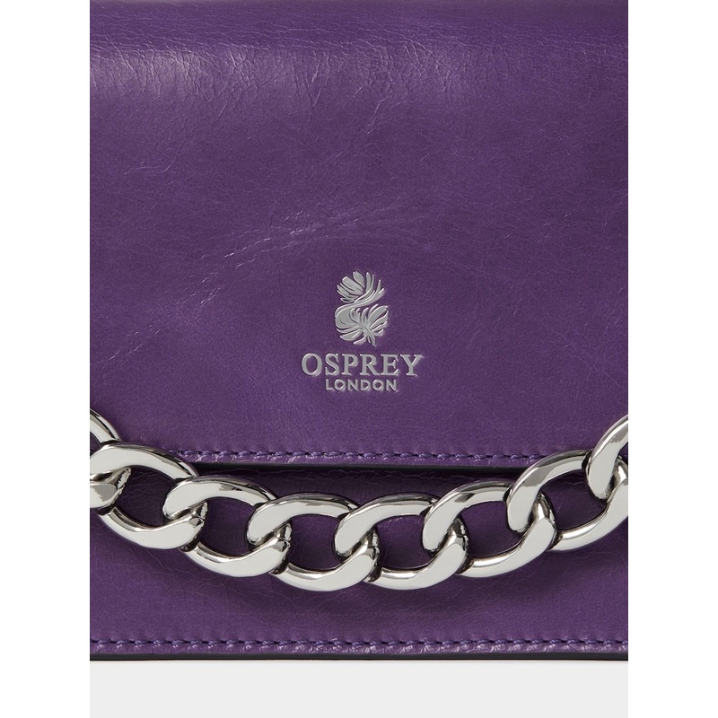 The Chunky Chain Clutch features a bold silver chunky chain that doubles as a chic grab handle. The front flap is adorned with a metal OSPREY LONDON logo, featuring the signature feather emblem for a touch of timeless elegance. Designed for versatility, Th