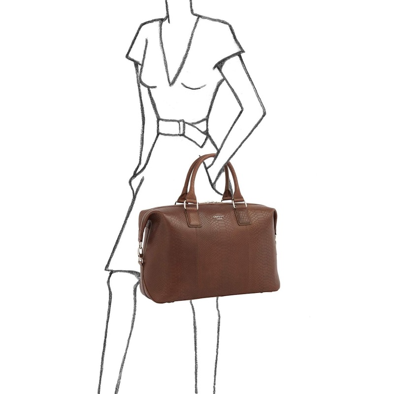With sleek, silver metal hardware set against its supple cowhide embossed with a snake print, The Nevada Weekender is a travel holdall with attitude. Height 300 Width 480 Depth 170 Height 30cm Width 48cm Depth 17cm 100% Leather.