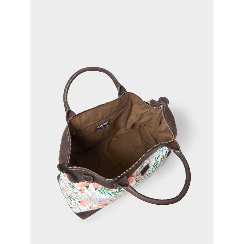 Meet the Orla Weekender, the perfect travel companion crafted from premium canvas with refined leather accents. Designed for the modern adventurer, it features multiple compartments to keep your essentials organised and within reach. The detachable and adjustable webbing strap ensures comfort and convenience, making this bag an effortless choice for weekend getaways and beyond. The extremely roomy interior features a mobile phone pocket, a slip pocket and a zipped pocket with a smart leather zip pull. Height 37cm Width 50cm Depth 22cm 100% Cotton.