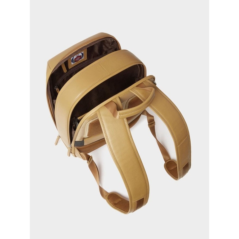 This sleek and versatile leather backpack is designed to keep up with modern life. Expertly crafted from supple leather and technical nylon for enhanced comfort, it features two padded sections for your tech, an elasticated water bottle holder, dedicated sections for pens, slip and zipped pockets, and a key strap all within an A4-compatible interior. Its slimline profile is ideal for commuting, while discreetly placed external pockets provide secure, easy access to essentials. The rear compartment features a large, padded pocket to hold up to a 15 laptop, a smaller padded suede slip pocket that can fit up to a 9 screen, and 11 card slots. Comes with a dust Brown Light bag. Height 37cm Width 30cm Depth 12cm 100% Leather.