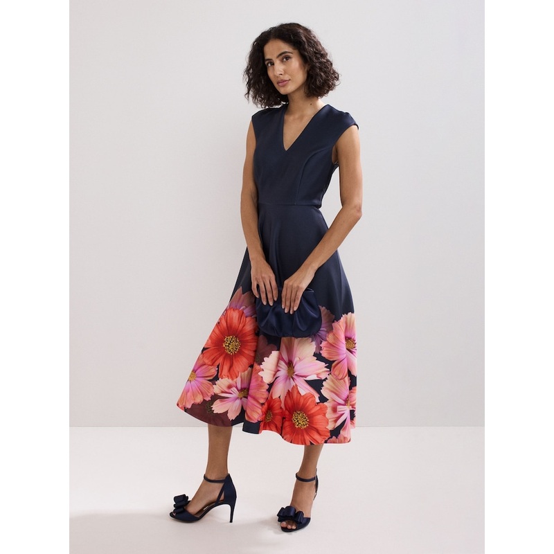 Designed in a luxe navy satin, this clutch bag will elevate all your event looks. The ruched shape allows the fabric to shine with every movement. With a silver chain handle, you can easily wear on the shoulder or tuck into the bag to wear as a classic clutch. 100% Polyester.