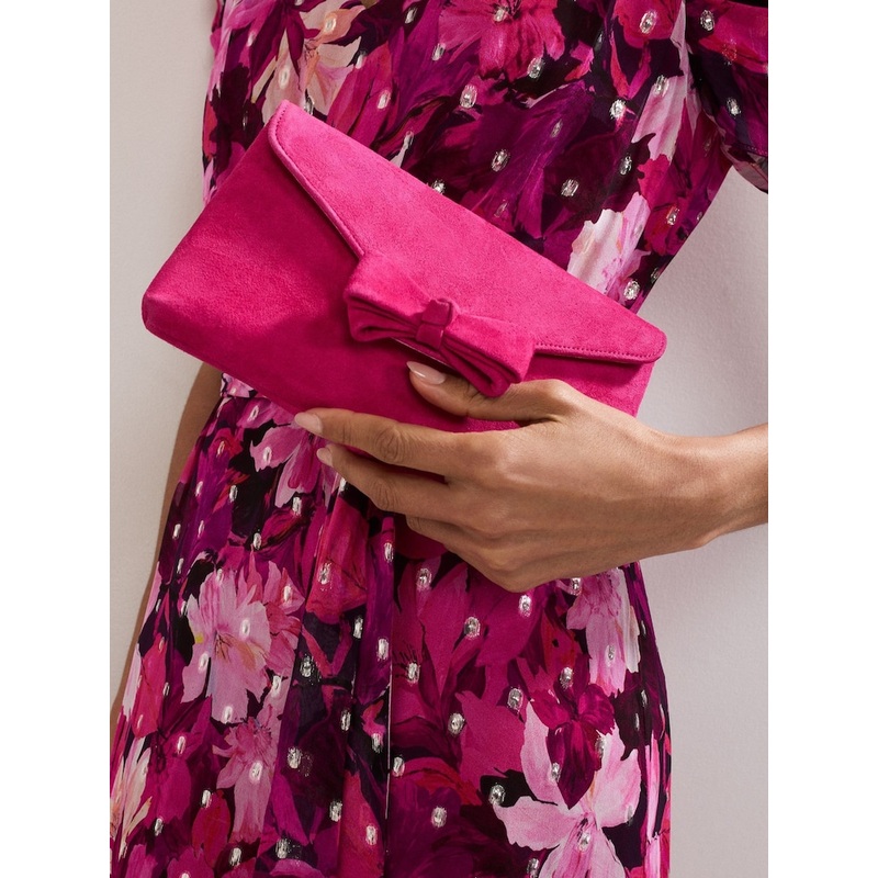 Buy Phase Eight Pink Suede Bow Front Clutch from Next USA