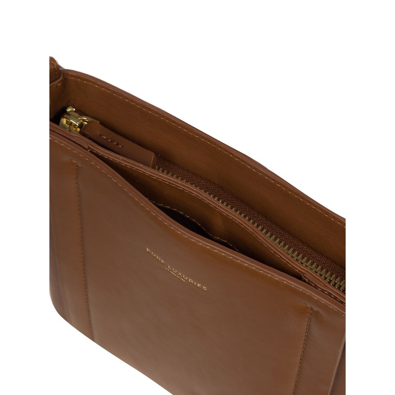 The Kali cross-body bag in brown from Pure Luxuries London’s Knightsbridge Collection is handcrafted from gold standard Nappa leather with a super-soft and smooth finish. The zip-over top opens to reveal a 100% cotton interior. The spacious compartment features four card slots to help maintain an organised bag. A slip pocket on the front of the bag provides on-the-go storage. Features gold-coloured metal fittings and zips alongside the adjustable slim leather strap with a maximum drop length of 65cm. The Pure Luxuries logo is embossed in gold foil for a beautifully simple finishing touch. Height 18.5cm Width 2cm Main 100% Leather. Lining 100% Cotton.
