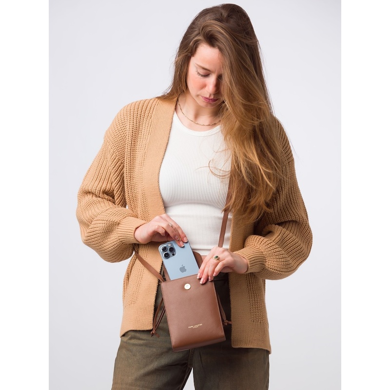The Kiana cross body phone bag from the Pure Luxuries Marylebone Collection is handcrafted from high-quality, genuine Nappa leather with a natural super-soft touch. The minimalistic fold-over top is secured by a gold-coloured magnetic press stud. This prac