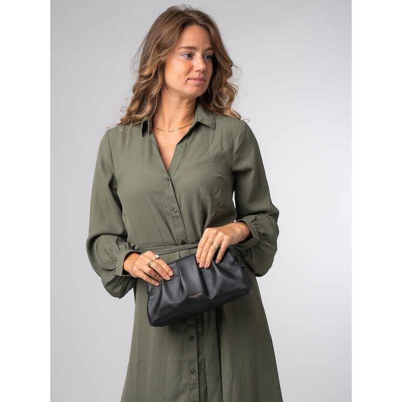 Combining a cross body and clutch style into one, the Kimberley is a must have from Pure Luxuries Knightsbridge Collection. The unique croissant like pleated design crafted from gold standard Nappa leather is an eye-catching look. Inspired by the affluent district of London, home to fashion houses from across the world, this design isn’t all style and no substance with a spacious 100% cotton lined interior and three card slots. Ample space for all your essentials. This style comes with an adjustable and detachable slim leather strap that allows you to easily transition from day to night; with a maximum drop length of 60cm. The Pure Luxuries logo is embossed in gold foil which complemented by the gold coloured metal fittings and zips for a beautifully simple finishing touch. Height 13cm Width 28cm Depth 9.5cm Main 100% Leather. Lining 100% Cotton.