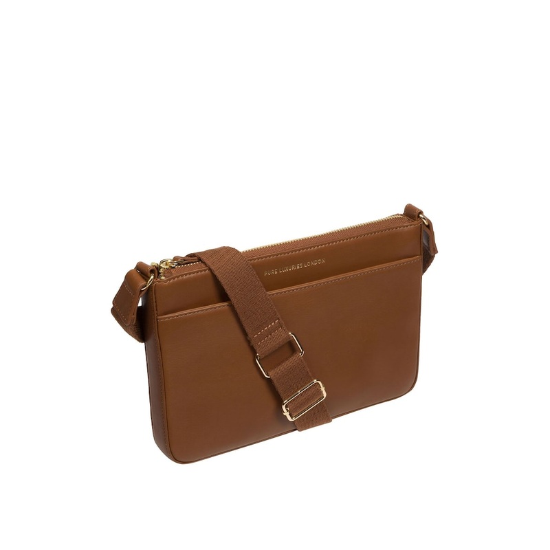 The Raye cross-body Brown bag from Pure Luxuries London’s Knightsbridge Collection is handcrafted from gold standard Nappa leather with a super-soft and smooth finish. The zip-over top opens to reveal a 100% cotton interior. The spacious compartment features four card slots to help maintain an organised bag. Pockets on the front and rear of the bag secured by a magnetic press stud, provide on-the-go storage. Features gold-coloured metal fittings and zips alongside the adjustable canvas strap with a maximum drop length of 69cm. The Pure Luxuries logo is embossed in gold foil for a beautifully simple finishing touch. Height 16.5cm Width 25cm Depth 3cm Main 100% Leather. Lining 100% Cotton.