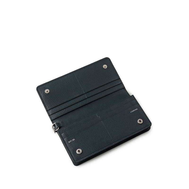 One way to make a purse even more practical is to make it a clutch bag too. Thats what our Designers did when they created the Chester Row purse, a slim, flapover shape in soft grain leather with a detachable wristlet chain strap and pocketed interiors. It puts style and functionality at the tips of your fingers. Grain leather. Detachable wristlet chain strap with T-bar fastening. Flap with leather-covered press studs. Contrast interior. Eight card slots. Zipped pocket with leather puller. Interior slip pocket with heritage mark. Foil logo. Comes with a dust bag. Main 100% Leather. Lining 65% Cotton, 35% Polyester.